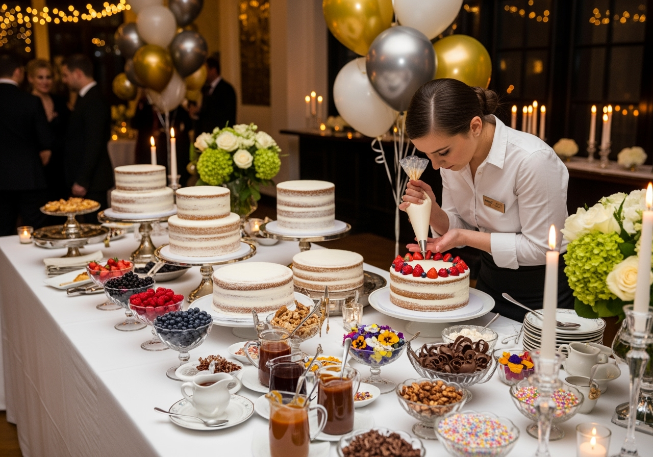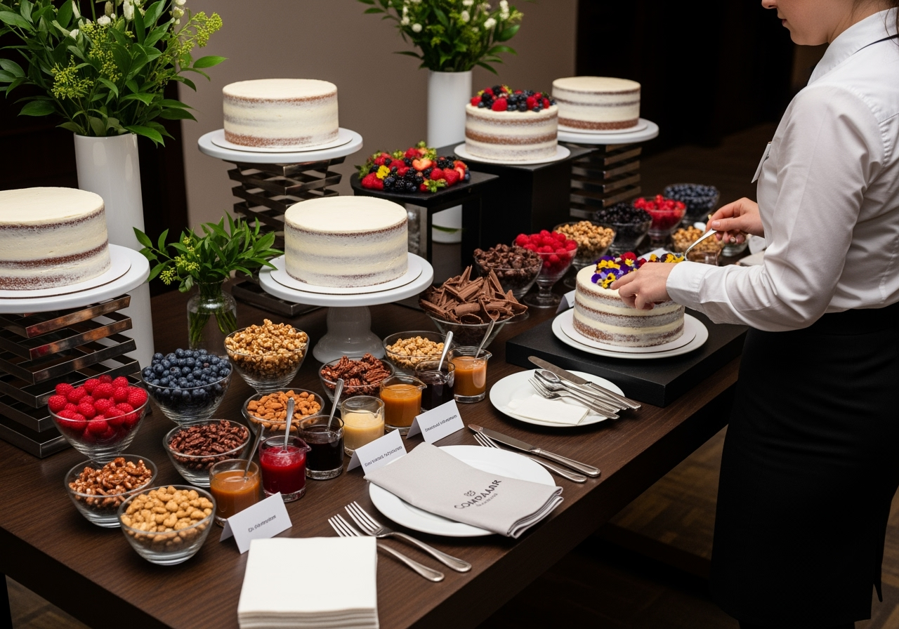 Think of it as a make‑it‑your‑way cake bar. Styled, staffed and stress‑free. I bring everything, set up a beautiful station with ribbons, risers and signage, and serve your guests with satin‑smooth buttercream and a sprinkle of magic. You enjoy the compliments.
